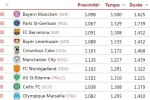 CIES评选最具传控风格球队排名:拜仁巴黎巴萨前三 曼城第六