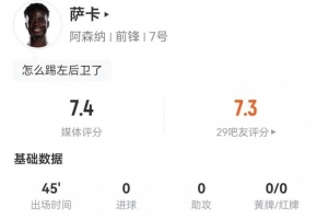 下一篇: 1助攻4抢断,诺尔高当选阿森纳4-0维冈竞技一役全场最佳