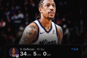此役国王前锋德罗赞打了39分钟26投13中,三分7中1、罚球8中7拿到34分5篮板,正负值-17,没有送出助攻!