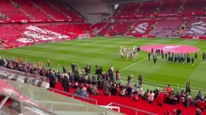 赛前,克洛普走进安菲尔德场地内,全场爆发出雷鸣般的欢呼声。