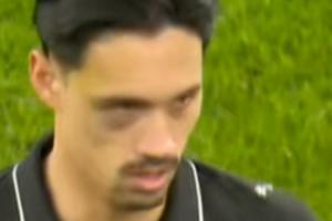 有点可怜,赖因德斯替补登场,顶着此前欧冠时受伤造成的熊猫眼